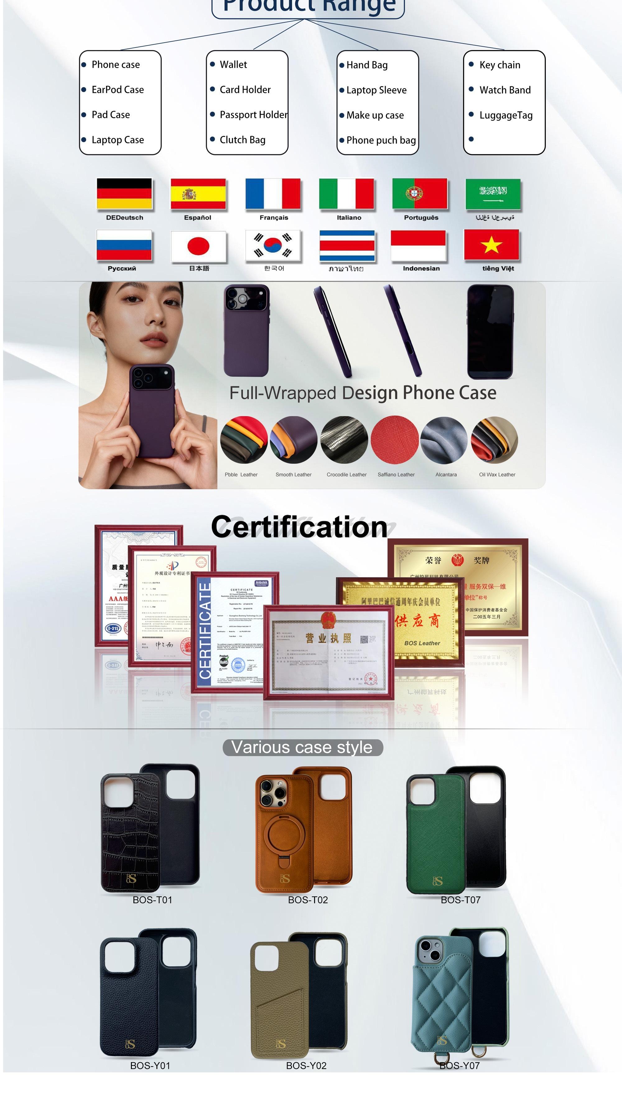 Productos principales:Funda de cuero, funda de teléfono, bolsa de ordenador portátil, bolso, cartera